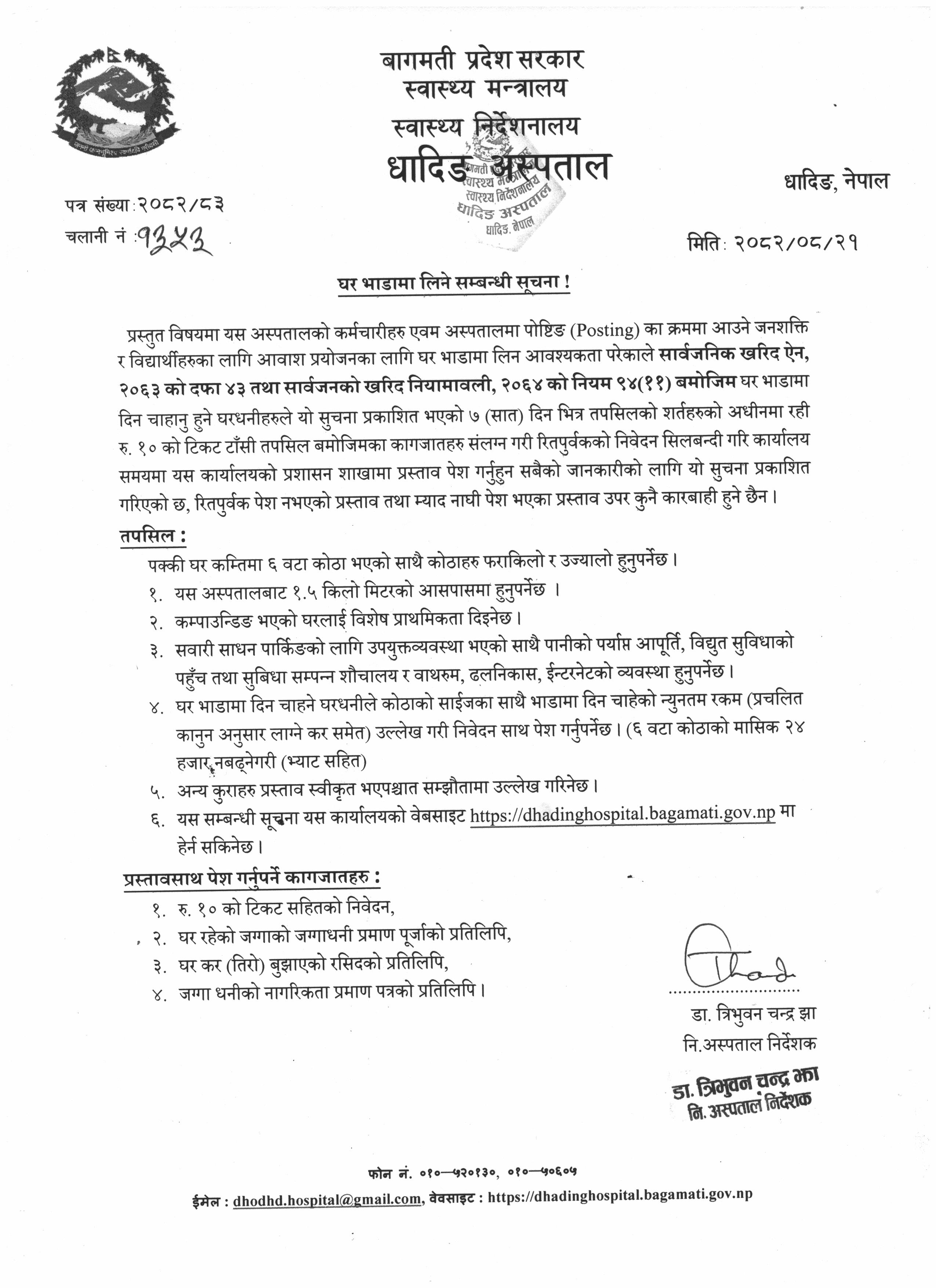 घर भाडामा लिने सम्बन्धी सूचना! |
