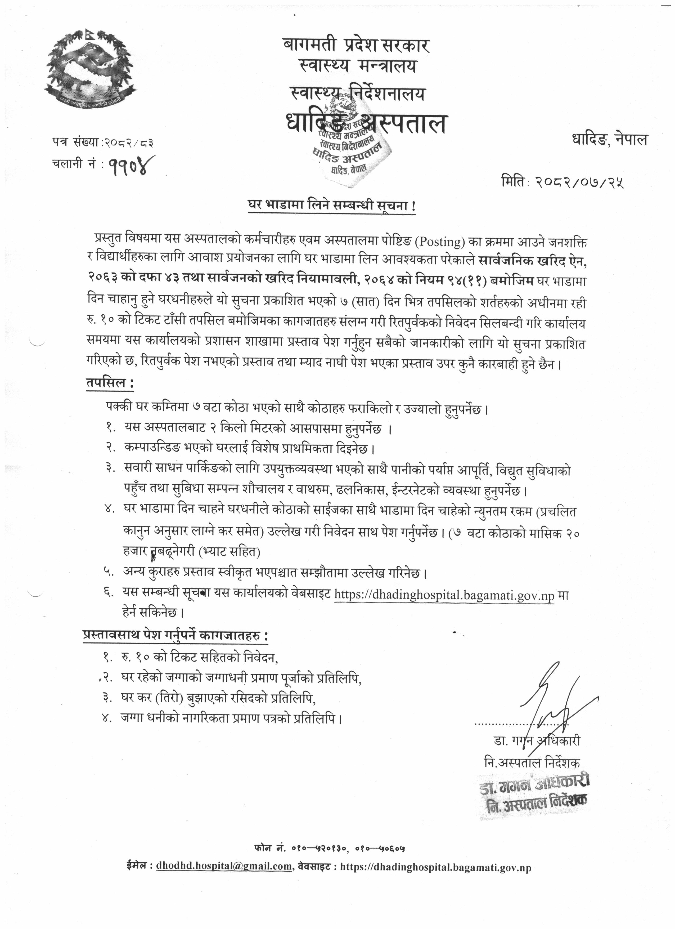 बाेलपत्र आव्हानकाे सूचना सम्बन्धमा DHD/DHADING/03/082-83 TO DHD/DHADING 13/082-83